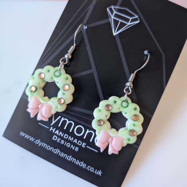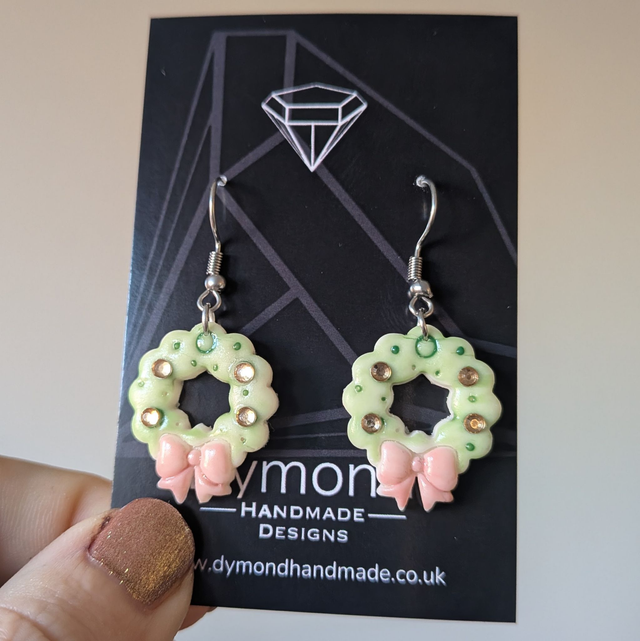 Christmas - Christmas wreath with bow dangle earrings & Sparkles