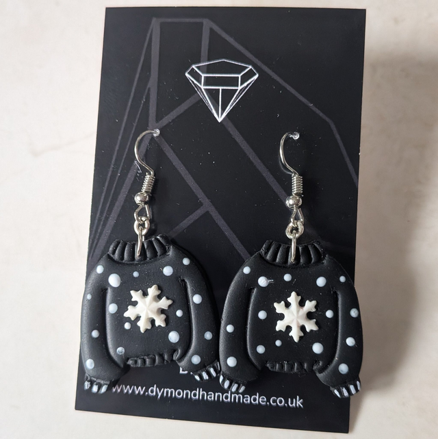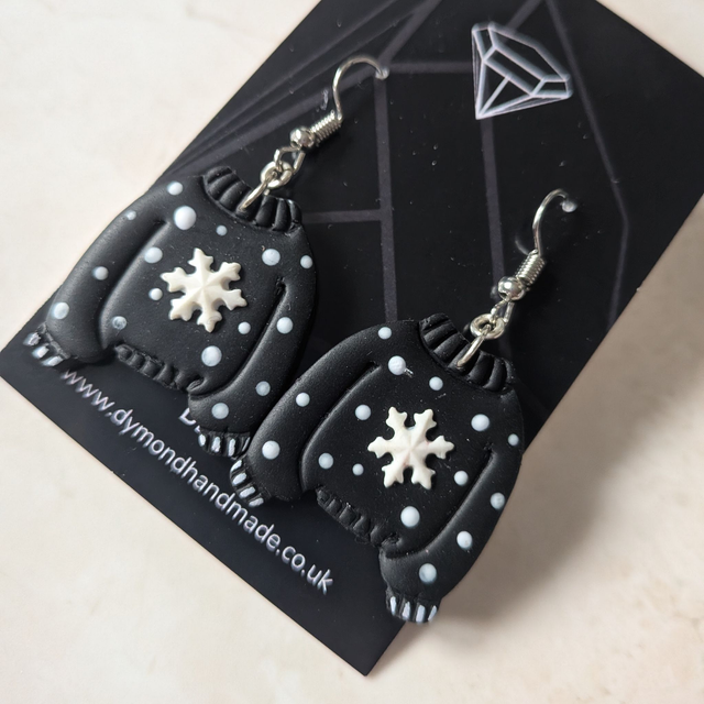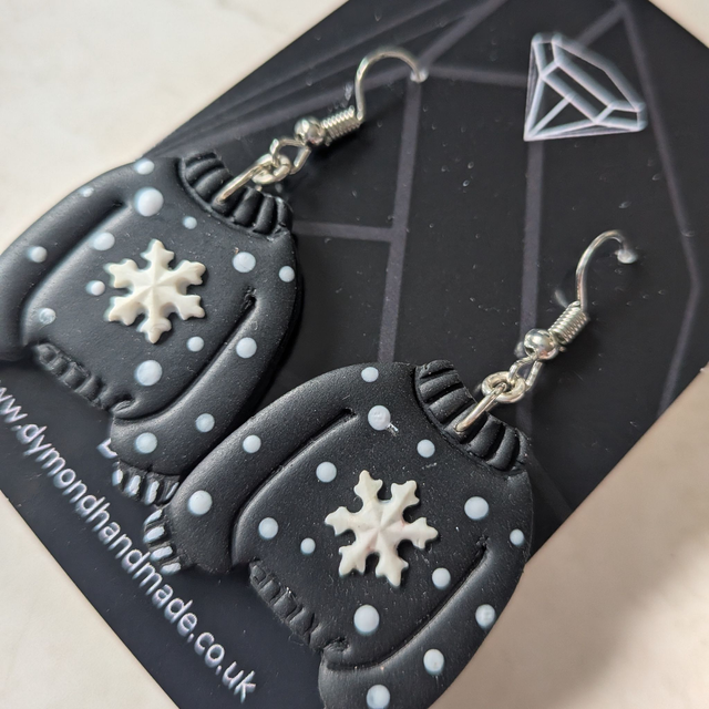 Christmas jumper black snowflake dangle earrings