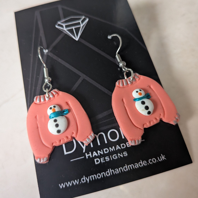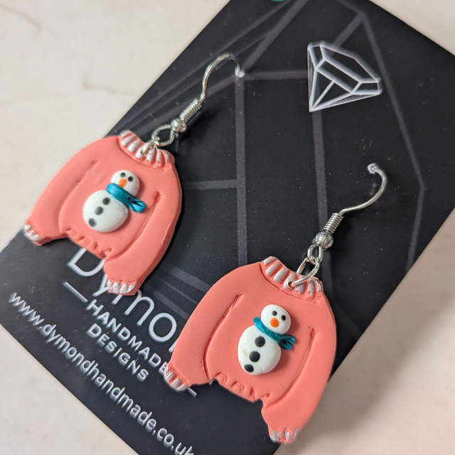 Christmas jumper Pink Snowman dangle earrings