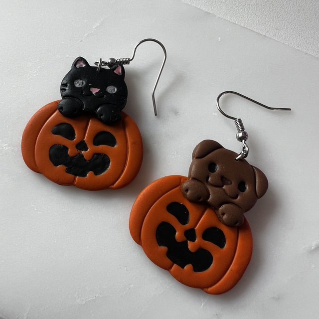 Pumpkin Pals Halloween Earrings 🐱 🐶